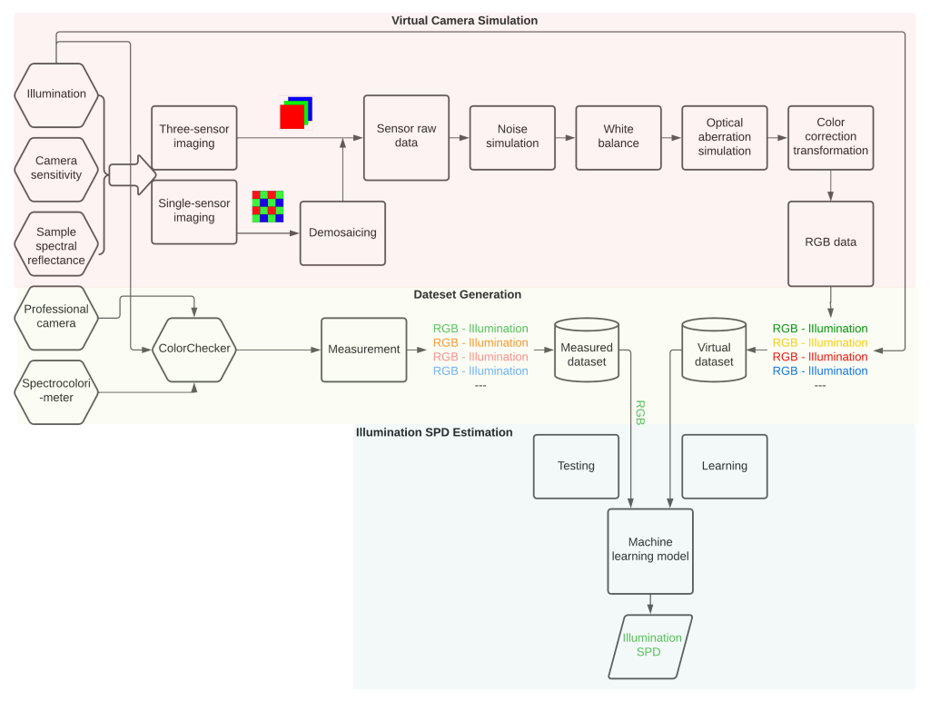 Dong Han, Philippe Colantoni, Eric Dinet and Alain Trémeau, « Lighting Spectral Power Distribution Estimation With RGB Camera, » in 2022 16th International Conference on Signal-Image Technology & Internet-Based Systems (SITIS), Dijon, France, 2022 pp. 281-288.
