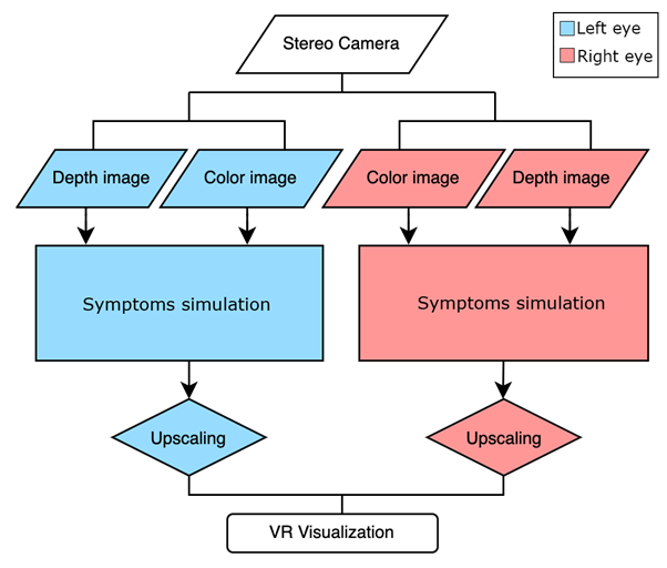 A dual-pipeline, a new system that allows the video acquisition from both sensors in a stereo camera. Allowing the user, in this manner, to experience a see-through mixed reality system which will decrease the user’s visual abilities in a controlled environment and to specific degrees as needed, in a per eye- basis .