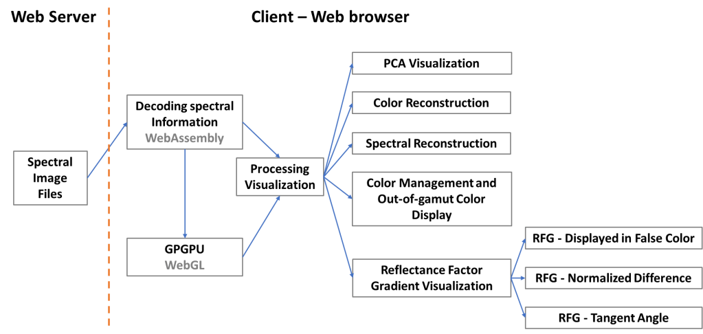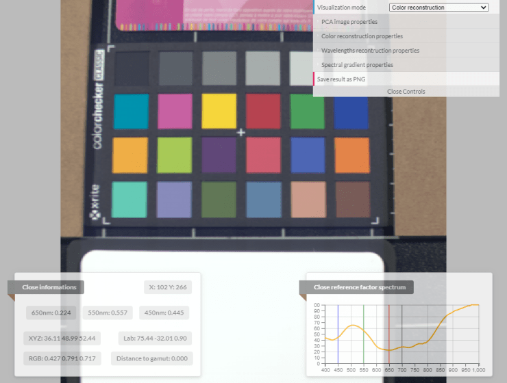 Philippe Colantoni, Jean-Baptiste Thomas, Mathieu Hébert, Alain Trémeau, « Web-Based Interaction and Visualization of Spectral Reflectance Images: Application to Vegetation Inspection. SN COMPUT. SCI. 3, 12 (2022). https://doi.org/10.1007/s42979-021-00870-8